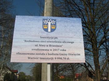 •  Rozbudowę sieci oświetlenia ulicznego ul. Niwy w Brzezince”