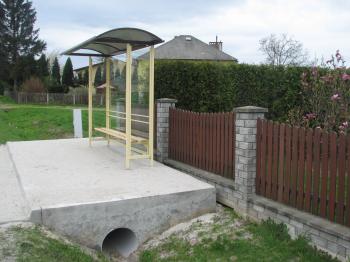 W ramach zadania wykonano nową wiatę przystankową oraz płytę betonową i fragment nawierzchni z kostki brukowej.