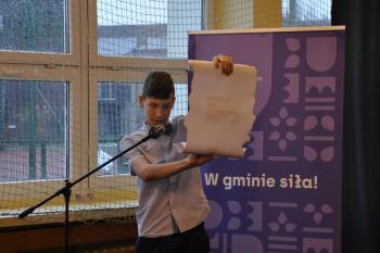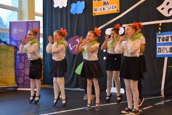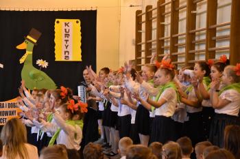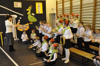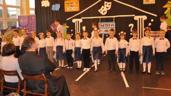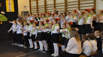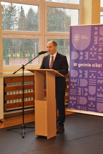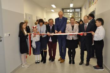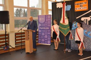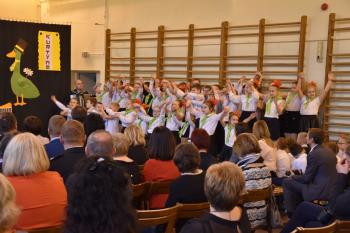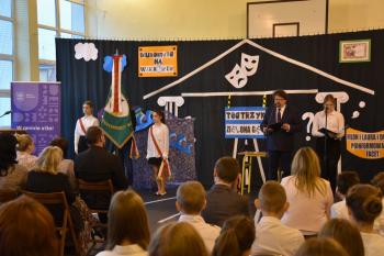 Następnie uczniowie przedstawili program artystyczny. Połączył on kabaretowe scenki przygotowane przez młodzież, piosenki w wykonaniu młodszych uczniów oraz poloneza odtańczonego przez najmłodszych. Przecięcie wstęgi i poświęcenie nowej kondygnacji budynku były ostatnimi akcentami uroczystości. Uczestniczyli w niej także zastępca wójta Halina Musiał, radni, sołtysi, dyrektor Samorządowego Centrum Usług Wspólnych Agata Michalska, żołnierze rezerwy – przedstawiciele patronów szkoły, dyrektorzy szkół i przedszkoli, członkinie kół gospodyń i przedstawiciele straży pożarnej.