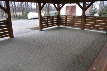 Nawierzchnia pod altaną przy Domu Ludowym w Harmężach została utwardzona i wybrukowana. Wykonano też odwodnienie i instalację oświetleniową altany. Na budynku remizy zainstalowano monitoring.