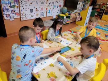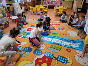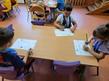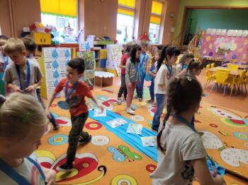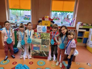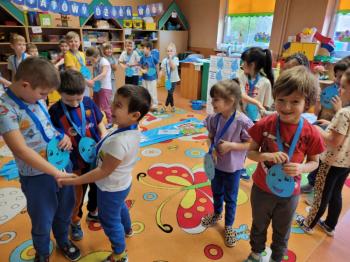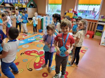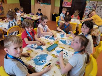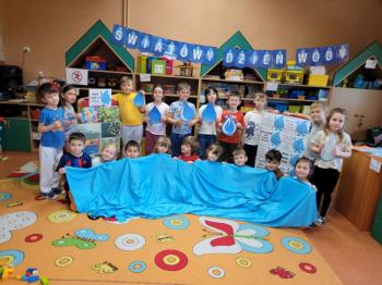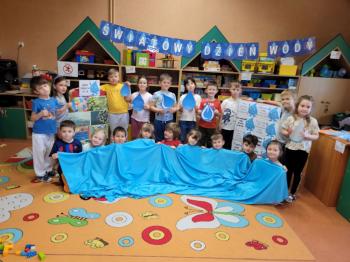 22marca obchodziliśmy w oddziale III Żabki Światowy Dzień Wody. Celem tego dnia było uświadomienie dzieciom, jak wielki wpływ ma woda na życie ludzi, zwierząt i roślin oraz zwrócenie uwagi na konieczność ograniczenia jej zużycia. Z tej okazji wszystkie przedszkolaki przyszły ubrane w kolorze niebieskim, symbolizując w ten sposób kropelki wody. Na początku wszystkie starszaki – kropelki bawiły się przy piosenkach o wiośnie. Następnie wysłuchały opowiadania H.Bechlerowej pt. ,,Kropelka wody”, po którym rozmawiały na temat : Do czego potrzebna jest woda i gdzie ją wykorzystujemy. Przedszkolaki do tego zadania wykorzystały obrazki. Ponadto dzieci zwróciły uwagę na to , że nie wszyscy ludzie zamieszkujący kulę ziemską mają taki sam dostęp do wody. Następnie uczestniczyły w zabawie ,,Ułóż tyle samo kropelek wody” i odpowiadały na pytania z Quizu Wodnego zdobywając punkty. Na zakończenie wykonały kartę pracy ,,Droga wody” oraz ozdabiały swoją Kropelkę Wody za pomocą niebieskiej farby i gąbki. Mam nadzieję, że podjęte działania przerodzą się w nawyk oszczędzania wody i każda kropelka wody będzie wielkim skarbem. To był ciekawy i interesujący dzień!!! |
