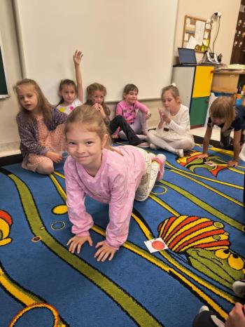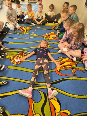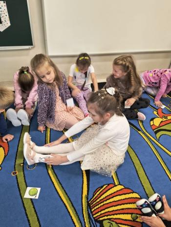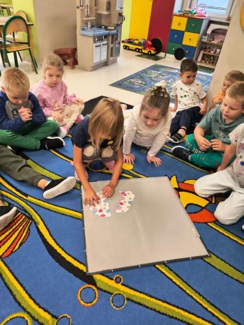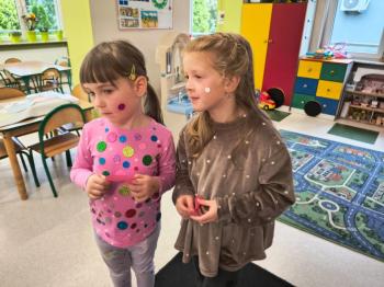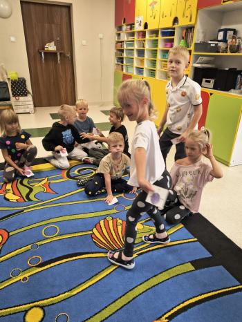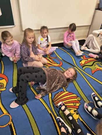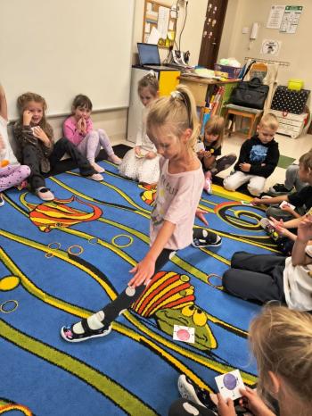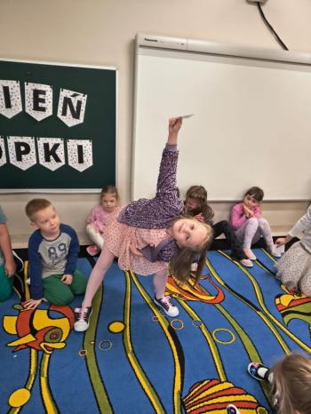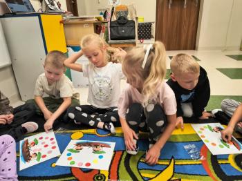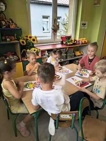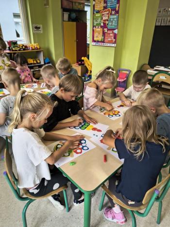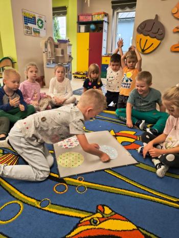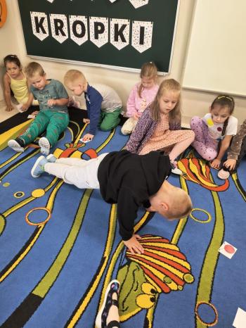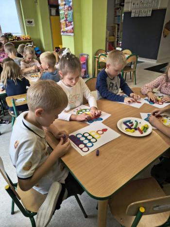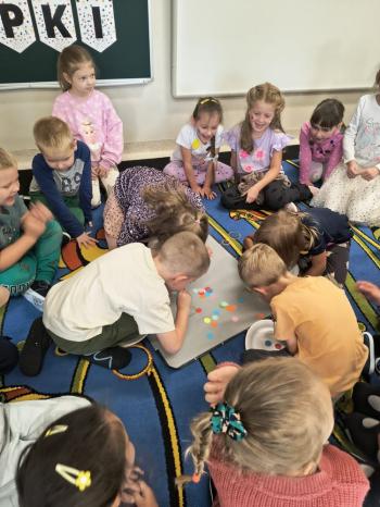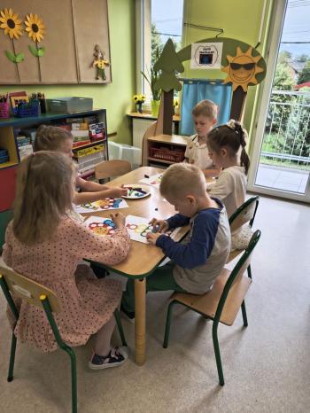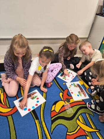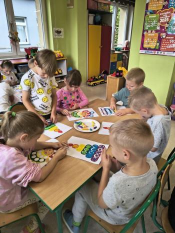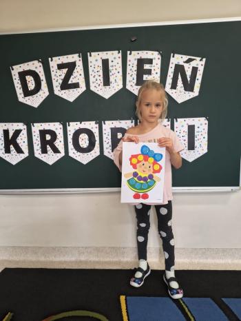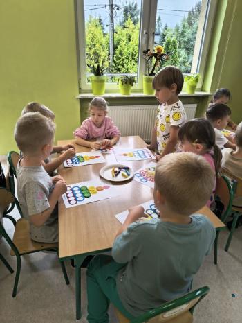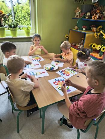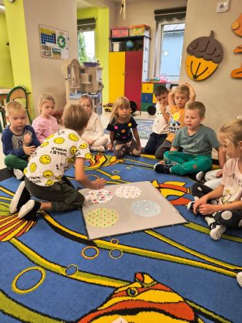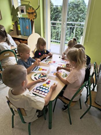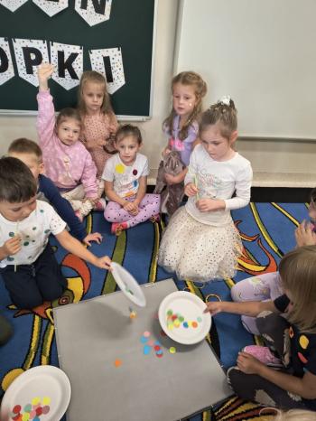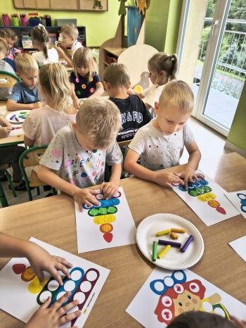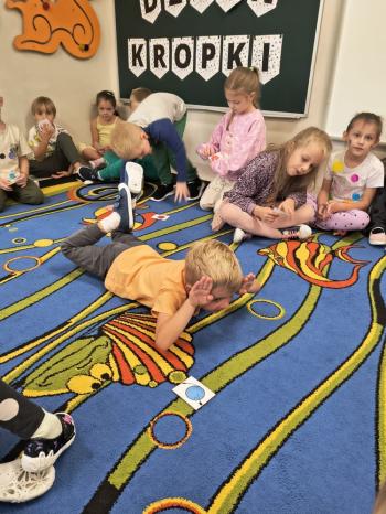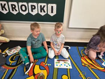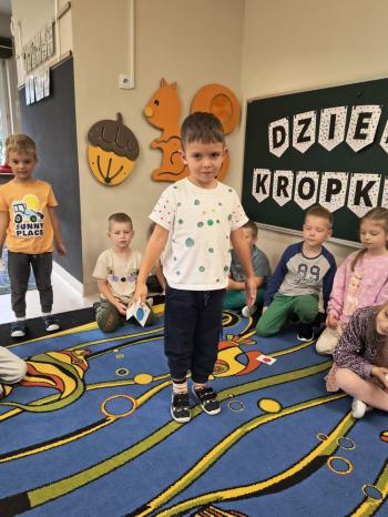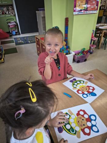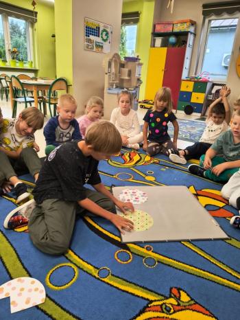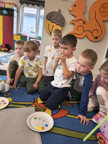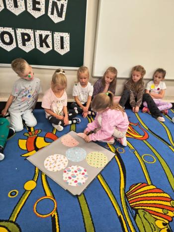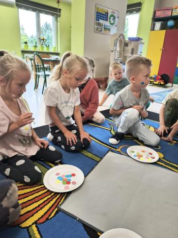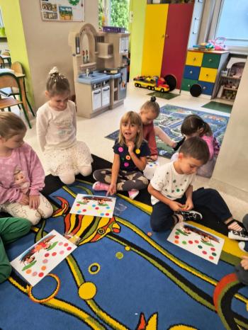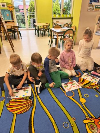 gry i zabawy ruchowe, wykonały prace plastyczną z użyciem kropek, a przez to