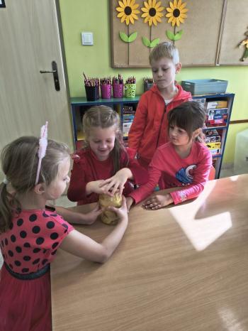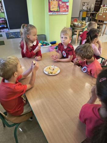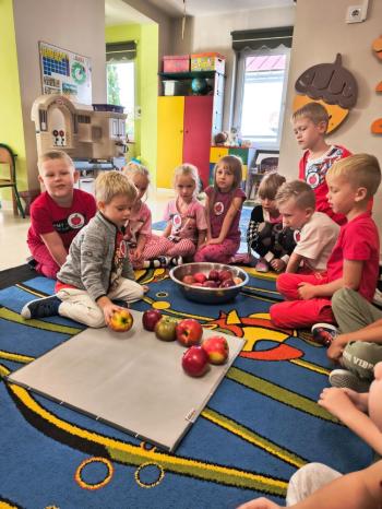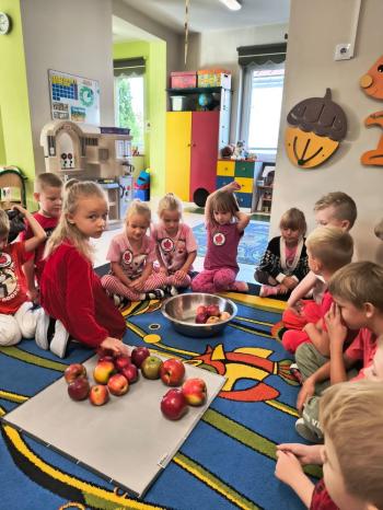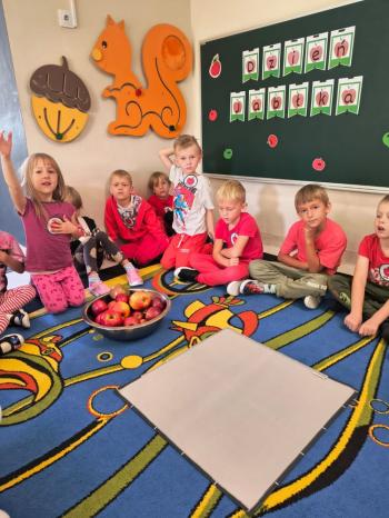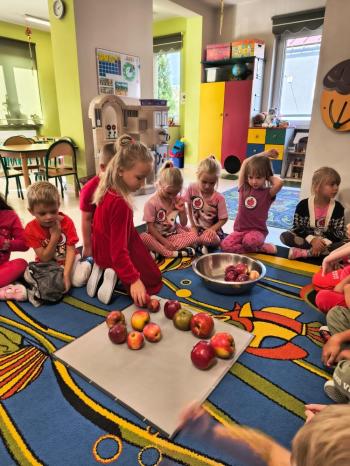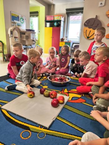 W piątek 26.09.2025r. w grupie ,,Pszczółek” obchodzono DZIEŃ JABŁKA.