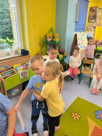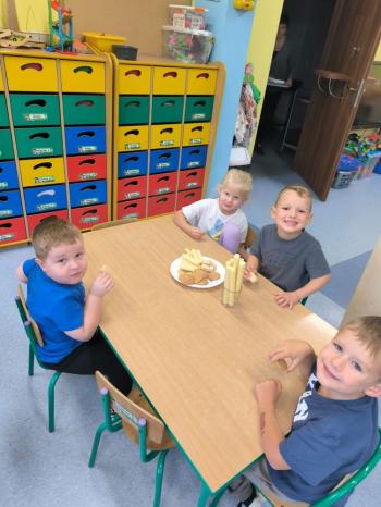 Dzień chłopaka w grupie Biedronek upłynął pod hasłem zabaw sportowych. W tym dniu nasi chłopcy musieli wykazać się sprawnością ruchową, zwinnością i szybkością podczas przygotowanych dla nich dyscyplin sportowych. Ze wszystkimi zadaniami chłopcy poradzili sobie znakomicie. Jednak czekał na nich jeszcze jeden test – test odwagi. Zadaniem chłopców było zjedzenie małego kawałka cytryny. Chłopcy udowodnili, że są bardzo dzielni i z zadaniem świetnie sobie poradzili. Na zakończenie na chłopaków czekały dyplomy i upominki, które wręczyła im ich koleżanki z grupy.