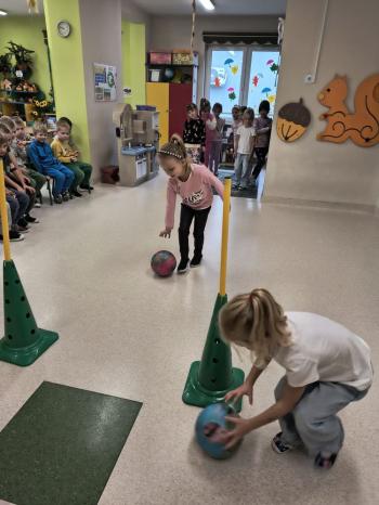 Dzień Dziewczynek w grupie ,,Pszczółek” przebiegał w sportowej atmosferze. Chłopcy z dumą spoglądali na koleżanki, które rywalizując między sobą wykazywały się zręcznością, zwinnością, szybkością oraz umiejętnością łapania piłeczki i rzucania woreczkiem. Doping ze strony chłopaków był bardzo głośny, co tylko zachęcało dziewczynki do jak najlepszego wykonania poszczególnych zadań. Humory wszystkim dopisywały, a zabawa dostarczyła