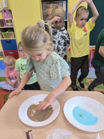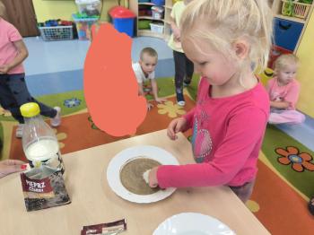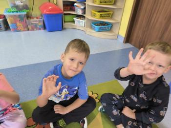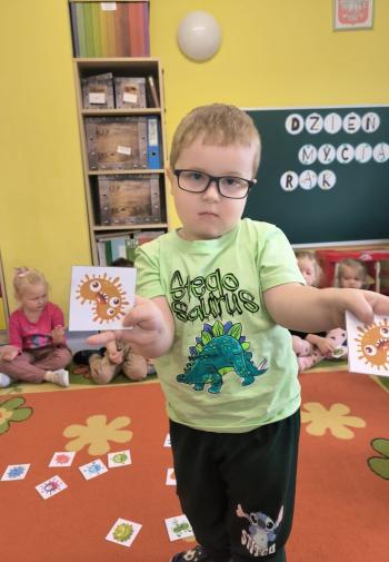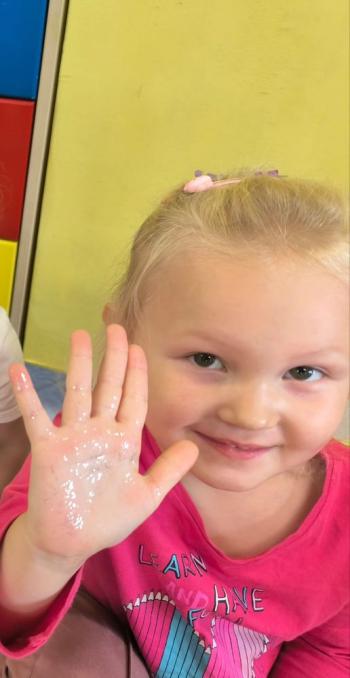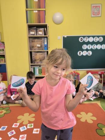 Na początku zajęć dzieci wysłuchały wiersza poświęconego czystym rączkom. Biedronki, dzięki eksperymentowi z brokatem, odkryły, jak szybko roznoszą się zarazki, wirusy i bakterie, gdy nie myjemy rąk. Uczestniczyły w zabawie ruchowej oraz ćwiczyły swoją spostrzegawczość podczas jednego z zadań. Poznały etapy prawidłowego mycia rąk i brały udział w eksperymencie „Uciekające zarazki”, który uświadomił im, jak istotne jest używanie mydła podczas mycia. Na zakończenie zajęć dzieci wykonały pracę plastyczną.