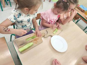 Podczas zajęć, które będą odbywały się raz w miesiącu, przedszkolaki poznają sposób przygotowania deseru lub przekąsek od podstaw. Dzieci niechętnie sięgają po nowe propozycje posiłków i dużą uwagę skupiają na walorach wizualnych i estetycznych podawanych dań. Bezpośrednie zaangażowanie dzieci w przygotowanie, wpływa korzystanie na zwiększanie poczucia sprawczości i odpowiedzialności za swoje zdrowie, a przede wszystkim zachęca do próbowania nowych smaków. Przedszkolaki dokładnie wiedzą, jakie produkty zostały wykorzystane, a także mają okazję do poznania ich smaków już na etapie ich przygotowania.