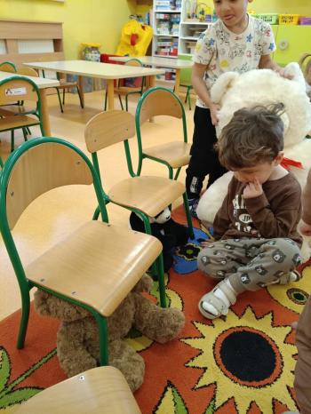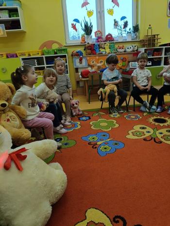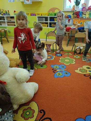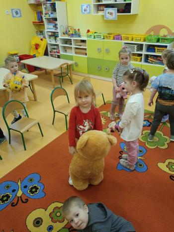 Wspólnie poznawaliśmy historię tego święta, słuchaliśmy „misiowych” opowieści, rozwiązywaliśmy zagadki, a także braliśmy udział w zabawach ruchowych i plastycznych. Nie zabrakło również wspólnych zdjęć z pluszakami oraz misiowych tańców.