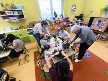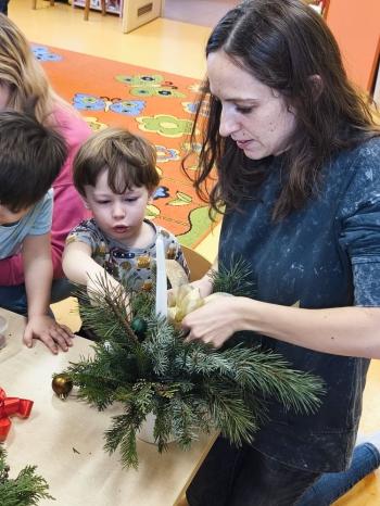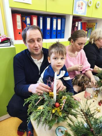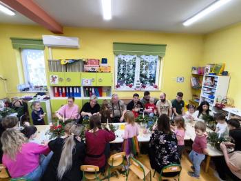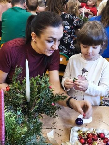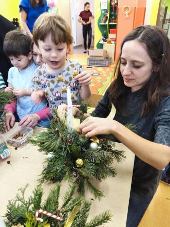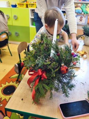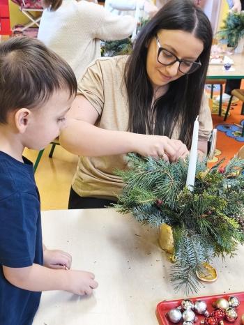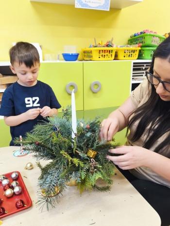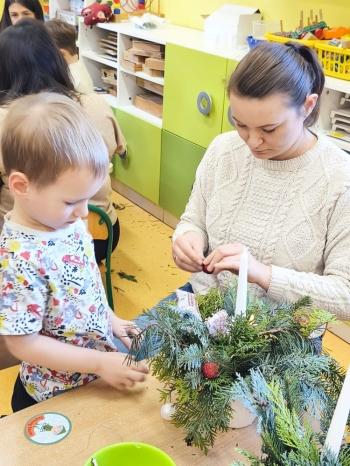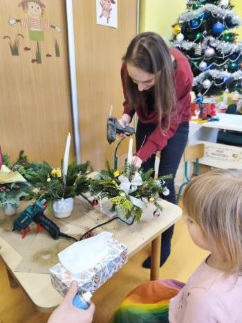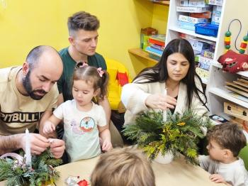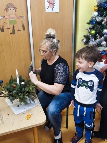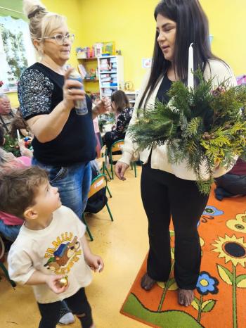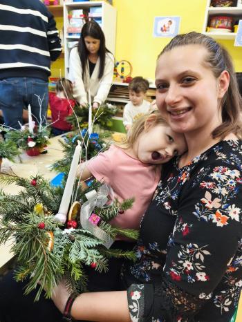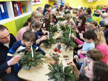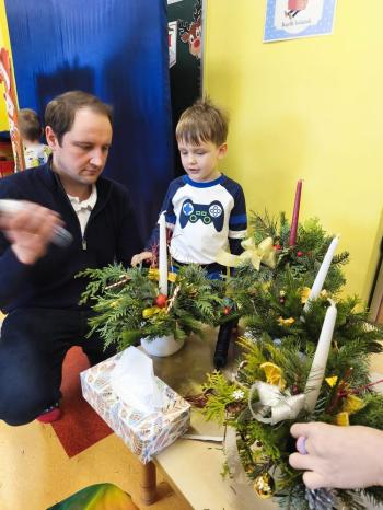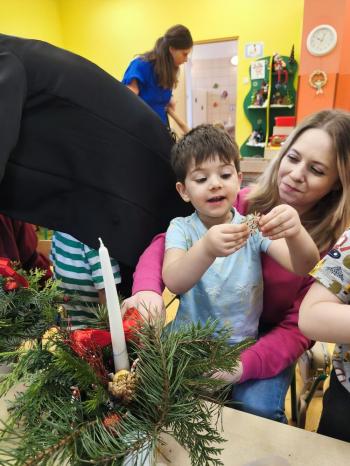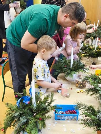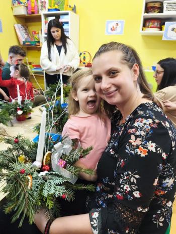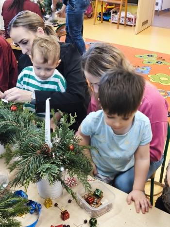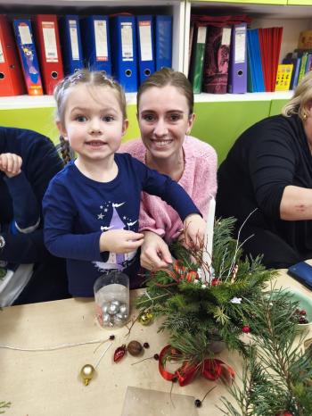 Tuż przed Świętami Bożego Narodzenia Motylki gościły w swojej sali rodziców i dziadków, a wszystko za sprawa zajęć otwarty. Goście mogli zobaczyć jak wygląda nauka i zabawa w najmłodszej grupie oraz jak zachowują się ich dzieci w relacji z rówieśnikami i nauczycielem. Po zajęciach rozpoczęła się część warsztatowa, którą poprowadziła nasza Pani Agnieszka Wojtaszczyk. Rodzice wspólnie z dziecmi wykonywali świąteczne stroiki, a wszystko to odbywało się w świątecznej atmosferze przy dźwiękach kolęd. Była również okazja do zrobienia zdjęcia w świątecznej fotobudce.