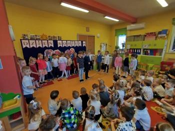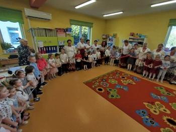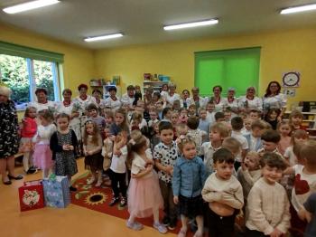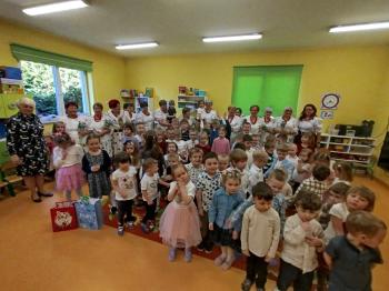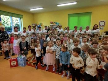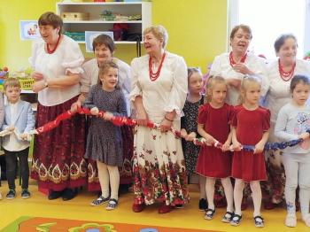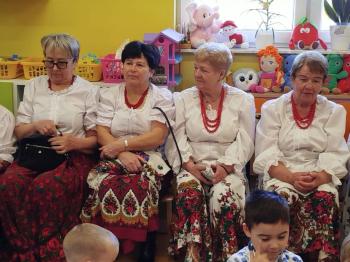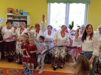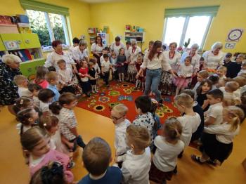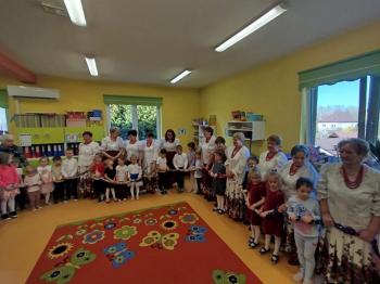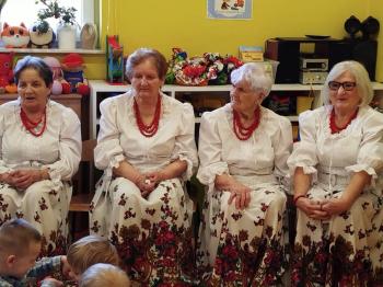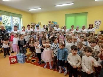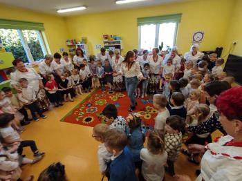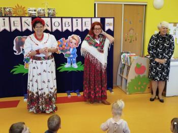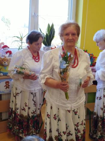 W tym roku z okazji Dnia Kobiet, gościliśmy w naszym przedszkolu panie z Koła Gospodyń Wiejskich z Włosienicy i Stawów Monowskich. Pani dyrektor Leokadia Kukla serdecznie powitała naszych gości i zaprosiła do oglądania krótkiego programu artystycznego. Przedszkolaki wyraziły szacunek i podziw dla kobiet przy okazji ich święta, a skoczne piosenki dopełniły całości występów. Była to również okazja do wspólnej zabawy i zapoznania z wyglądem barwnych strojów, w których nasze panie wyglądały bardzo dostojnie. Na zakończenie spotkania dzieci wręczyły paniom bukiety i słodkie upominki.