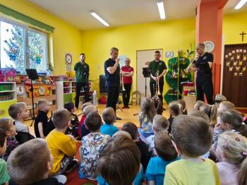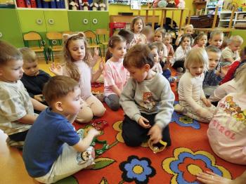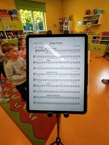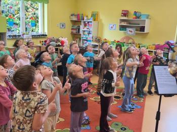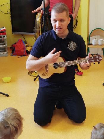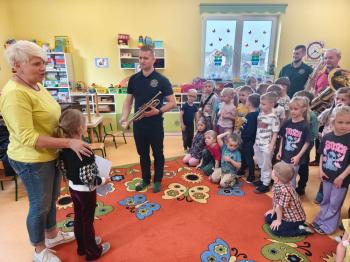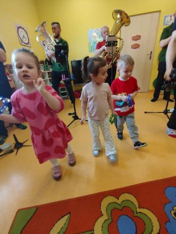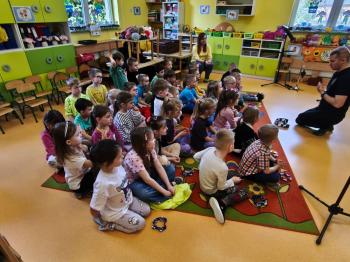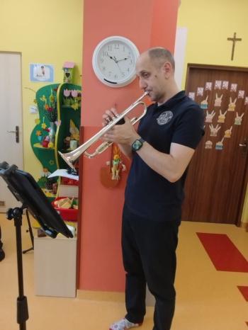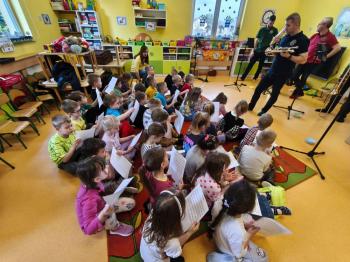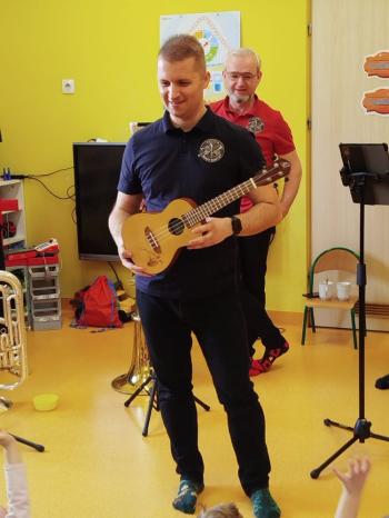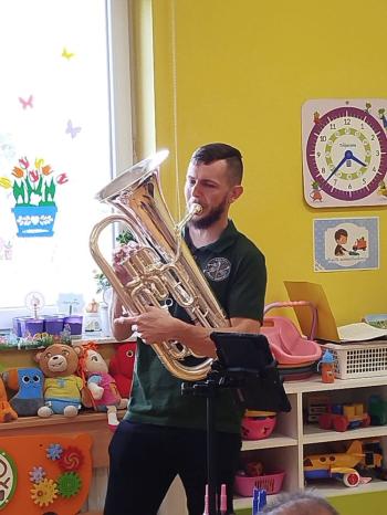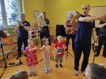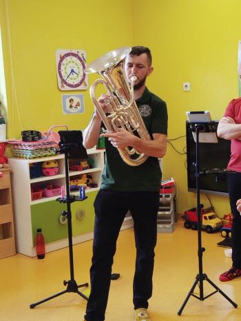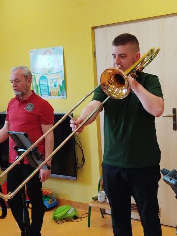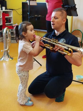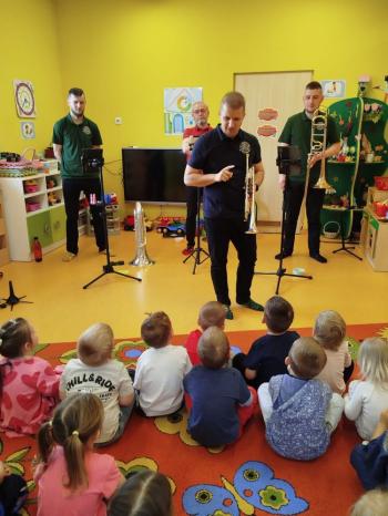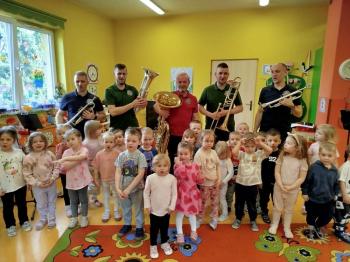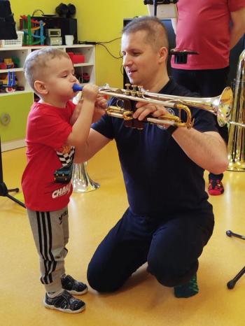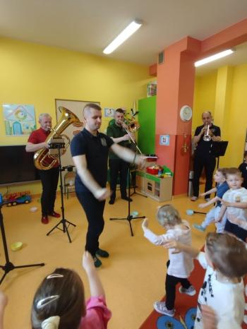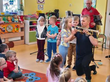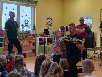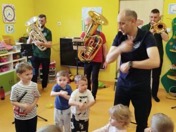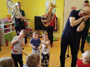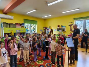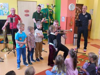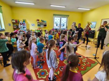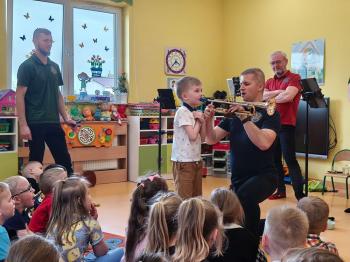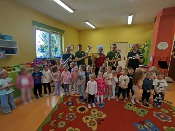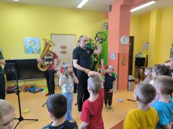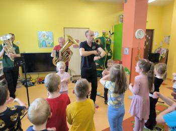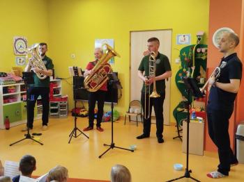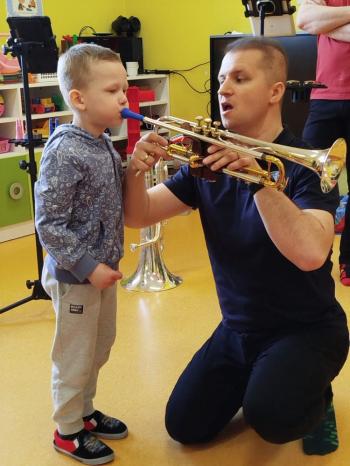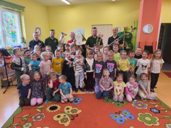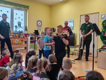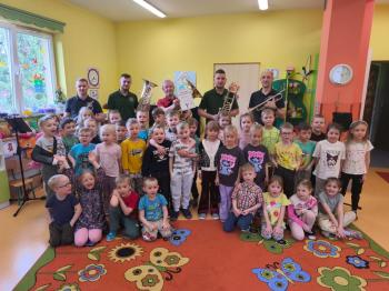 20 marca w naszym przedszkolu gościliśmy muzyków z Galicia Brass Quintet. Dzieci zapoznały się z wyglądem, budową i nazwami wybranych instrumentów dętych blaszanych oraz ich brzmieniem. Niektórzy mieli również okazję przekonać się, że wydobycie dźwięku z instrumentu dętego nie jest takie łatwe i wymaga właściwej techniki. Przedszkolaki dowiedziały się również czym jest zapis nutowy. Zabawy muzyczno-ruchowe przy wesołym akompaniamencie zachęciły wszystkich do aktywnego udziału w warsztatach. Może właśnie te zajęcia są dla kogoś pierwszym krokiem w muzycznej przygodzie?