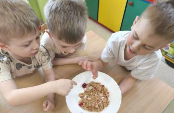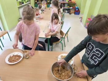 Marcowe zajęcia podczas realizacji innowacji pedagogicznej „Klub Zdrowego Łasucha” w grupie Pszczółek...