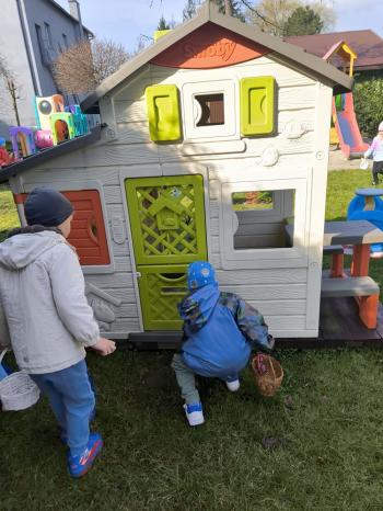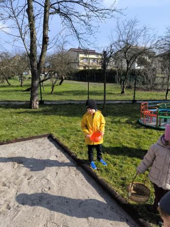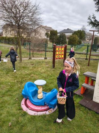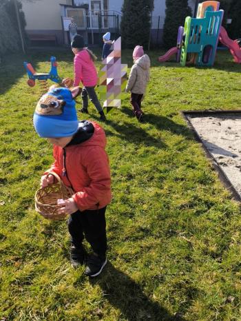 Tradycja przedszkola poprzedzająca Święta Wielkanocne podtrzymana! Nawet słoneczko zza chmurek dostrzegło przedszkolaków z koszyczkami i postanowiło towarzyszyć nam w tegorocznym zbieraniu czekoladowych jajeczek. Wszystkie grupy już od samego rana z niecierpliwością przebierały nóżkami, by udać się do przedszkolnego ogrodu w poszukiwaniu ukrytych smakołyków. Dobre humory i uśmiechy towarzyszyły dzieciom przez cały dzień, a każdy z zaangażowaniem pilnował swoich upolowanych jajeczek.