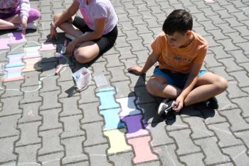 Teren, na którym odbywały się zajęcia zachęcał do wspólnych malowanek kredą czy zabawy na placu zabaw. Zachęcamy do obejrzenia fotorelacji z zajęć.