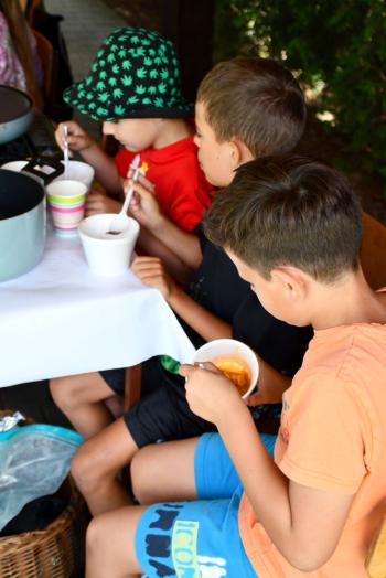 Dzieci miały okazję dowiedzieć się jak przyrządzić gulasz w kociołku oraz poznać tajniki kuchni i gotowania. Nie obeszło się bez zadawania pytań prowadzącemu, m.in. o program czy kulinarne podróże. Po wspólnym gotowaniu, nadszedł czas na degustację wspólnie przyrządzonych smakołyków.