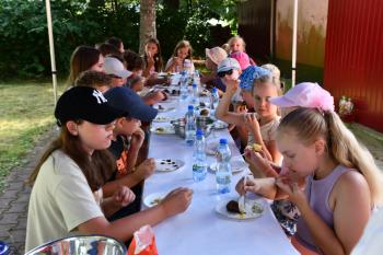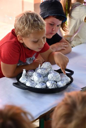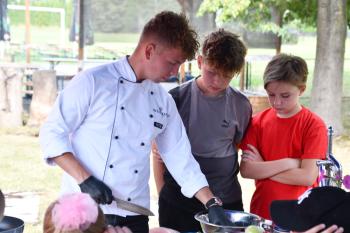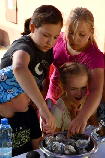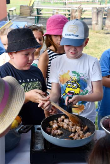 Nasze młode talenty miały okazję nauczyć się przyrządzać pyszne potrawy: ziemniaki pieczone w ogniu z masłem koperkowym , gulasz węgierski oraz orzeźwiającą lemoniadę . To był dzień pełen smaków, radości i kulinarnych odkryć!