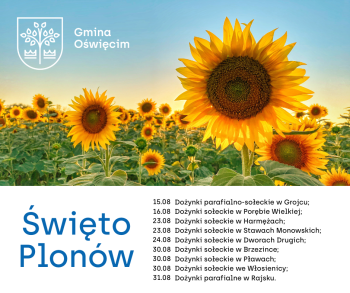Niedawno rozpoczęły się wakacje, a my już działamy przy współorganizacji Święta Plonów w 9 sołectwach gminie Oświęcim.