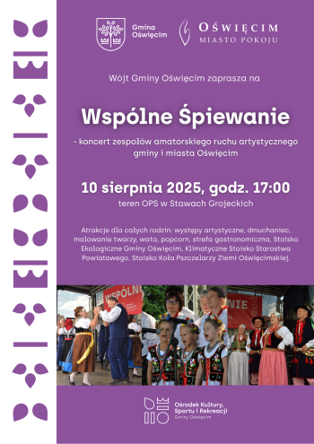 To będzie wyjątkowe, barwne i pełne emocji popołudnie! Serdecznie zapraszamy na „Wspólne Śpiewanie” – koncert zespołów amatorskiego ruchu artystycznego z gminy i miasta Oświęcim.
