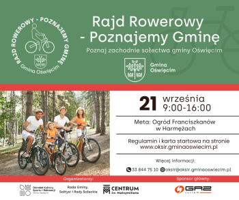 21 września serdecznie zapraszamy na Rajd Rowerowy – Poznajemy Gminę!