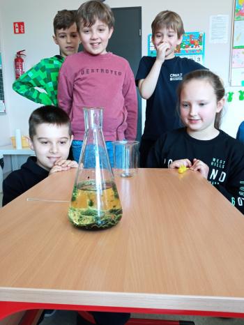 Uczestnicy zajęć dowiedzieli się wielu ciekawych rzeczy, wykonali plakato - puzzle i obserwowali eksperymenty. Wykazali się zaangażowaniem i wiedzą w quizach przygotowanych przez koleżanki i kolegów z klasy 8.