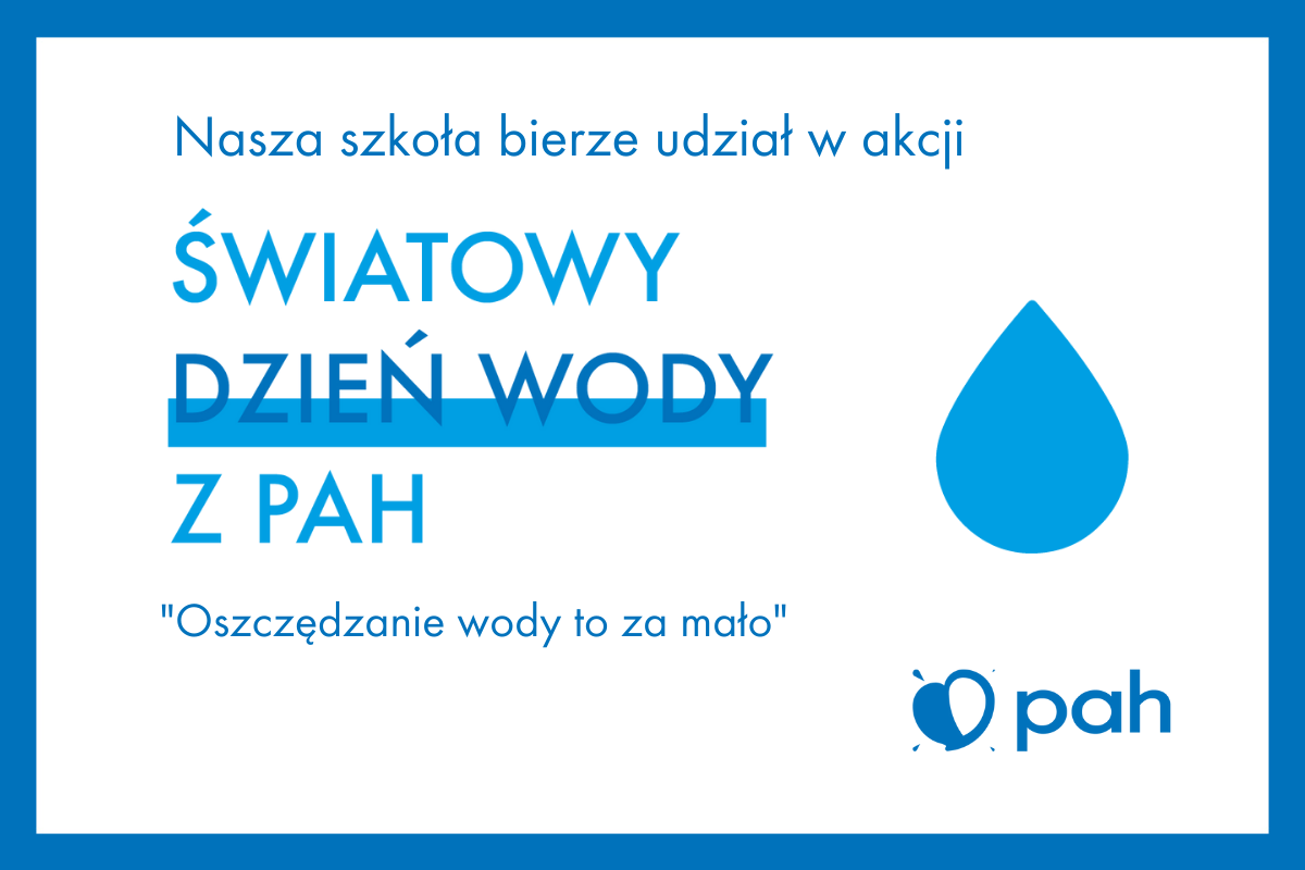 Nasza szkoła dołączyła w tym roku do Akcji organizowanej przez Polską Akcję Humanitarną - Światowy Dzień Wody z PAH.