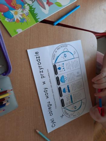 Zajęcia świetlicowe miały na celu uświadomienie dzieciom jak ważną rolę w naszym życiu odgrywa woda, skąd się bierze, jak możemy ją oszczędzać i z jakimi problemami spotykają się ludzie na świecie z powodu jej braku. Podczas zajęć w prezentacji multimedialnej został przedstawiony uczniom schemat obiegu wody w przyrodzie, właściwości wody oraz omówiony problem dostępności do czystej wody pitnej. W trakcie zajęć wykorzystano materiały Polskiej Agencji Humanitarnej (PAH). Ponadto dzieci wykonały pracę plastyczną „Cykl obiegu wody w przyrodzie”. Światowy Dzień Wody to dobry moment, aby przypomnieć dzieciom, że każdą kroplę wody trzeba szanować.