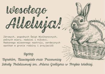 Z okazji Świąt Wielkanocnych, składamy najserdeczniejsze życzenia zdrowia, pokoju i miłości. Niech te wyjątkowe dni będą pełne radości i szczęścia. Wesołych Świąt! Dyrektor, Nauczyciele oraz Pracownicy SP im. Artura Grottgera w Porębie Wielkiej